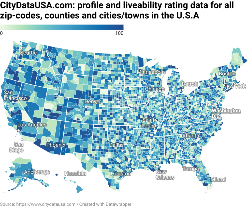 The concept of living index or liveability is to measure the quality of life and wellbeing of residents across all counties, cities/towns and zip codes using neighbourhood level data and advanced analytical methods. Ultimately, it aims to answer the question: which counties, cities/towns and zip codes offer the most suitable conditions for investment, business and individual successes?